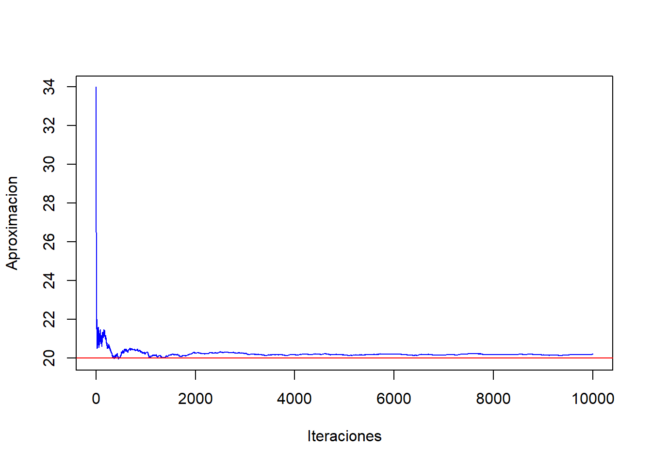 Realizaremos el proceso de Markov, para \(N= 10\^4\) casos y estimaremos el promedio de los resultados para cada cadena generada, este es el proceso conocimo como MCMC.