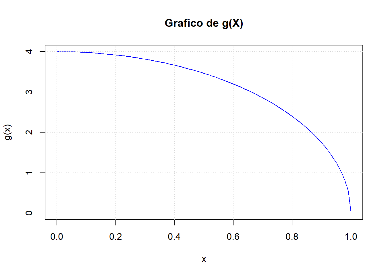 curve(g,0,1,col="blue",lwd=1,main="Grafico de g(X)")