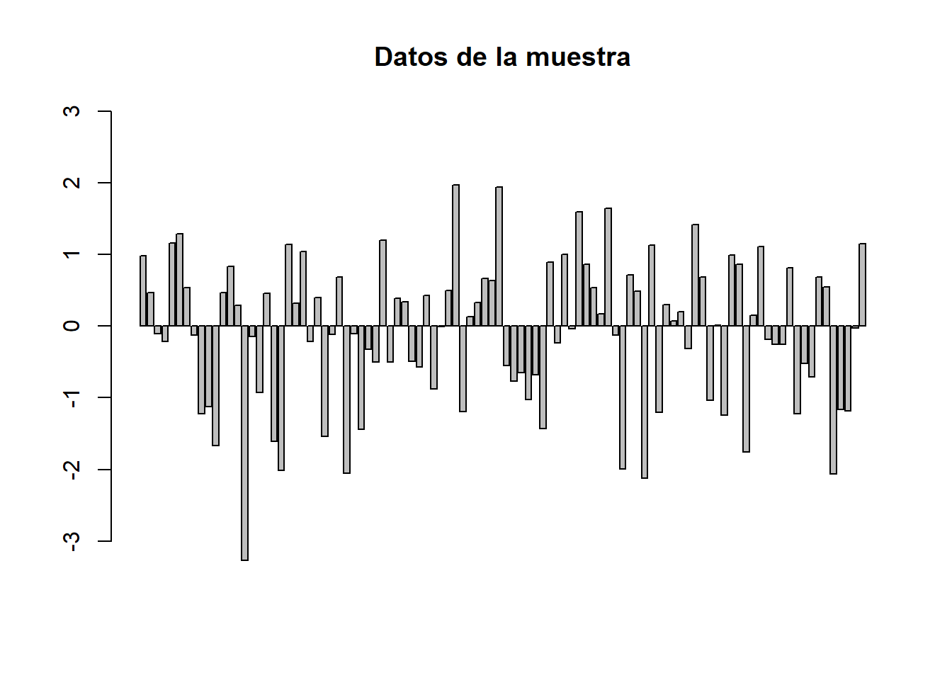 barplot(x, ylim=c(-3,3), main="Datos de la muestra")