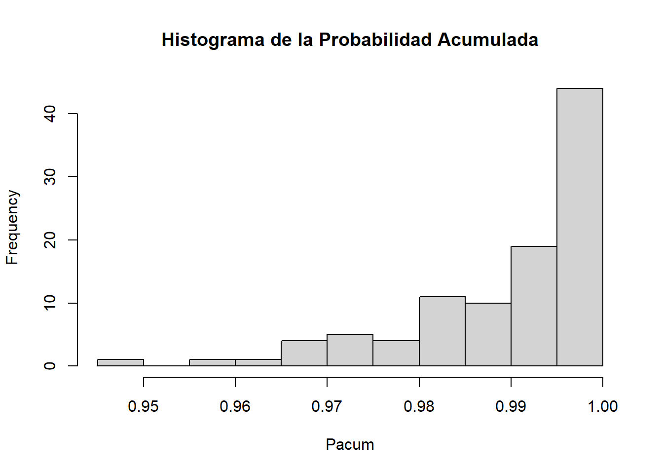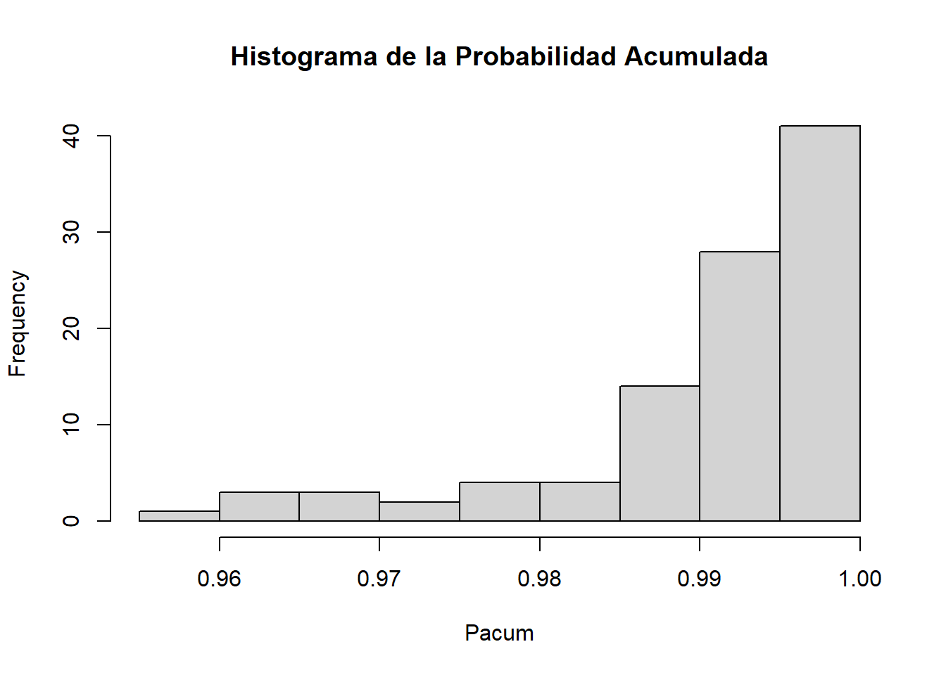 hist(Pacum, main="Histograma de la Probabilidad Acumulada")