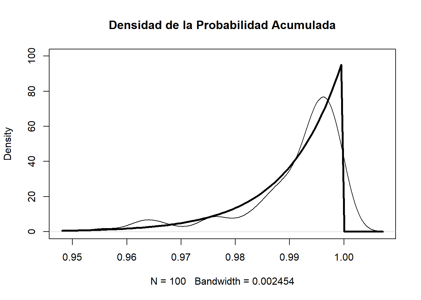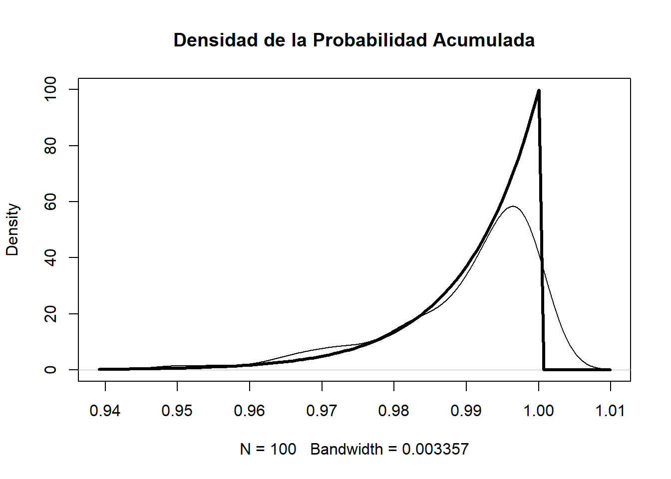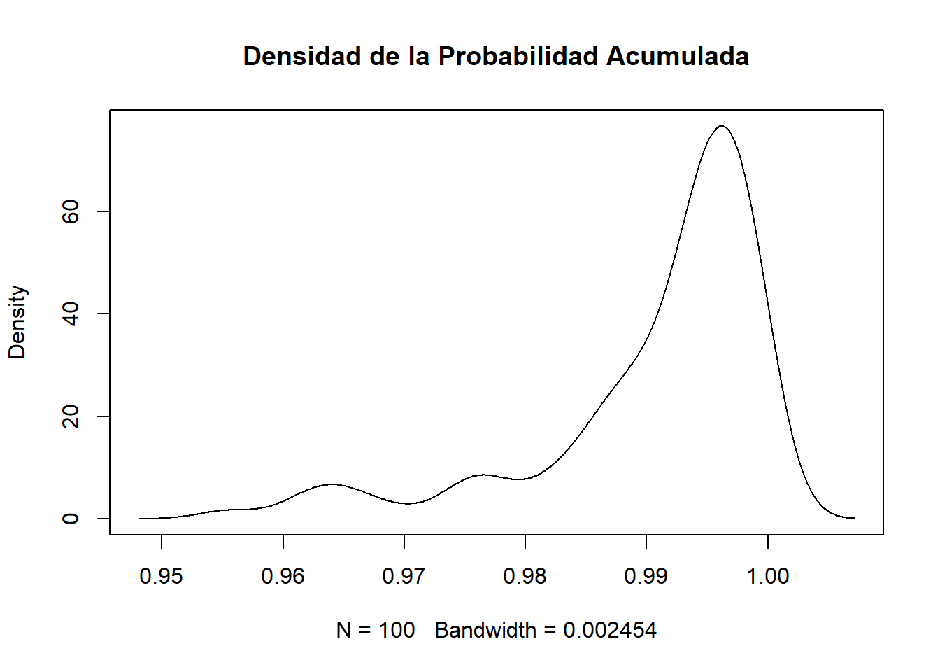 plot(density(Pacum),main="Densidad de la Probabilidad Acumulada")