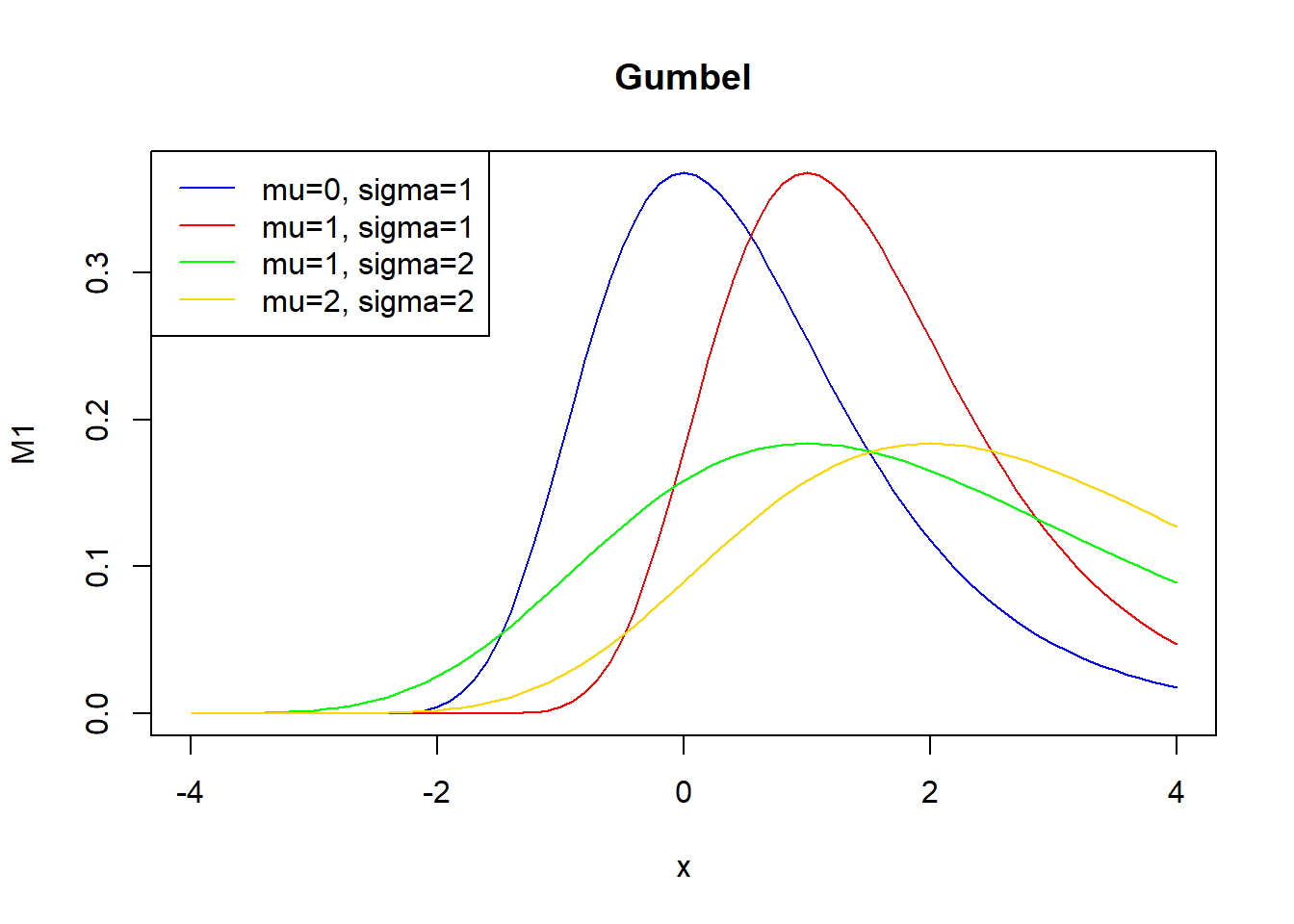 \[H(x,\mu,\sigma)=e^{e^{-(x-\mu)/\sigma}}, \quad -\infty < x< \infty, \sigma>0\]