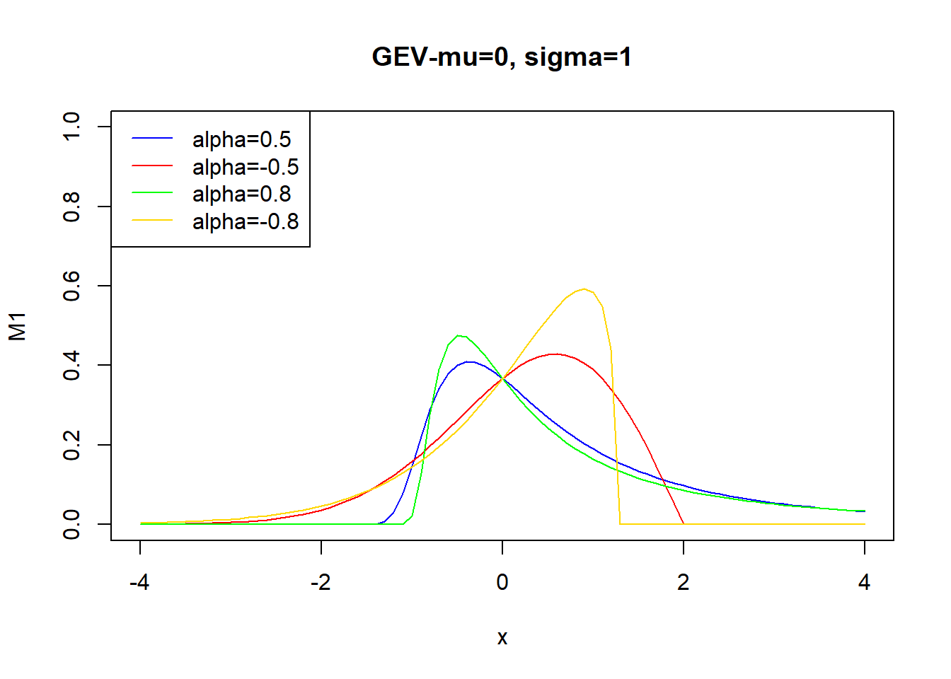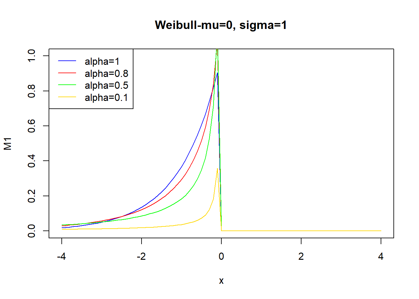 \[ H(x,\mu,\sigma, \alpha)=\begin{cases} e^{-(-(x-\mu)/\sigma)^{\alpha}} & x < \mu \\ 1 & x \geq \mu \end{cases} \] con \(\alpha >0\)