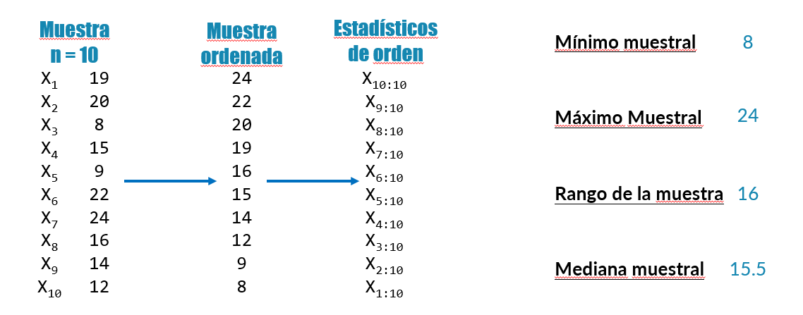 Podemos reordenar la muestra de menor a mayor, según la estadística de orden